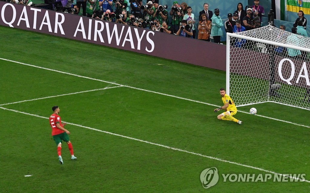 (서울=연합뉴스) 하남직 기자 = 모로코의 승부차기 네 번째 키커로 나선 아슈라프 하키미(24·파리 생제르맹)는 골문 정중앙으로 느리게 공을 찼다.
