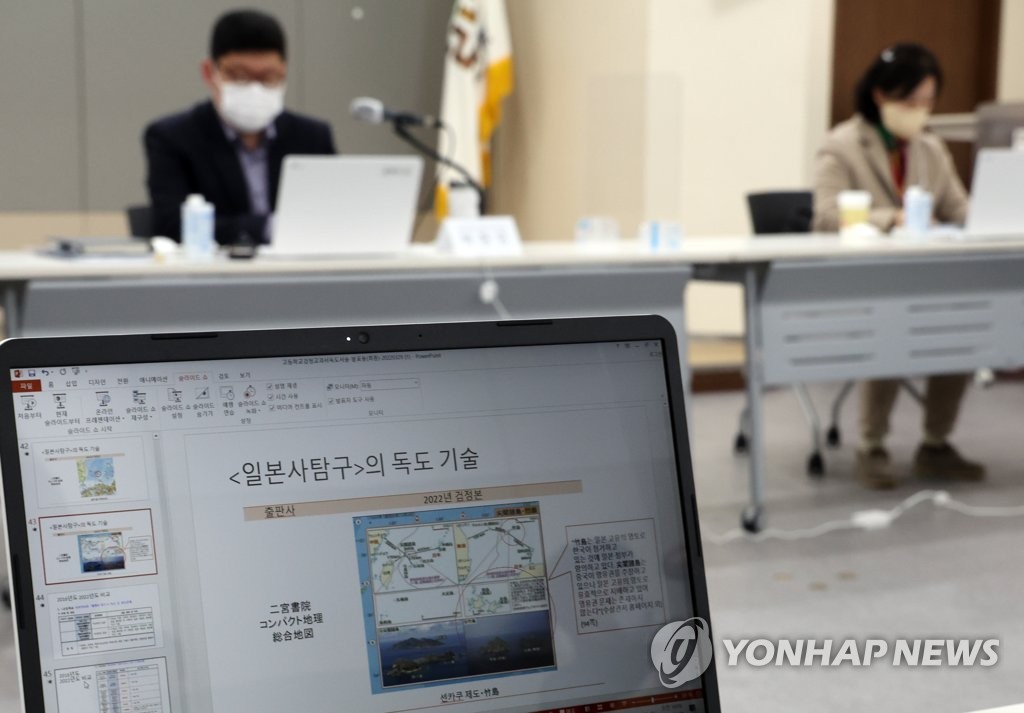| ▲ 동북아역사재단, 일본 교과서 분석 세미나 (서울=연합뉴스) 한상균 기자 = 30일 동북아역사재단에서 일본 고교 검정교과서 내용 분석 전문가 세미나를 하고 있다. 일본은 29일 고교 2학년생 이상이 내년부터 사용하는 239종의 교과서가 검정 심사를 통과했다고 발표했다. 2022.3.30 xyz@yna.co.kr |