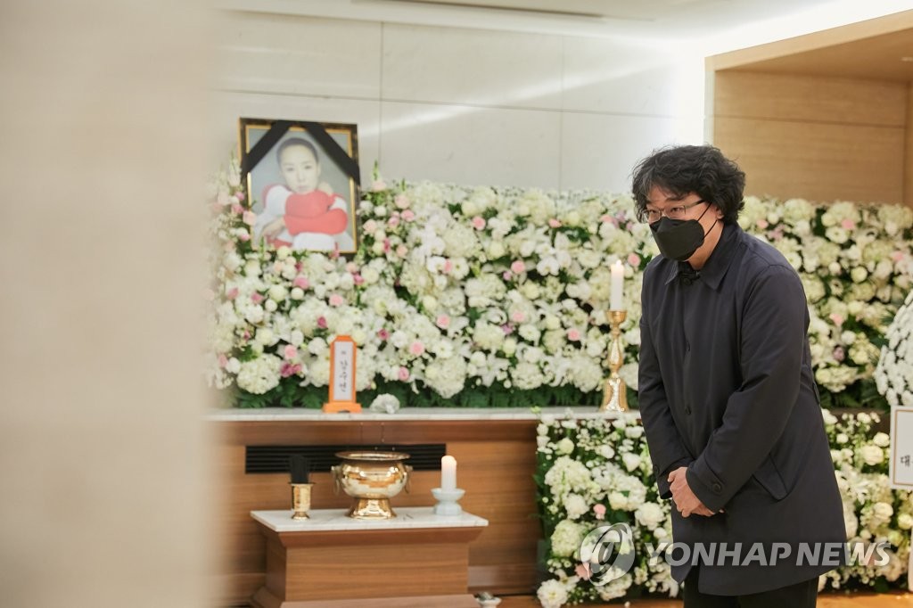 오전 11시께 빈소를 찾은 봉준호 감독은 영정사진을 한참 동안 바라보다 앞으로 다가가 인사한 후 십자성호를 긋고 나서 묵념했다.