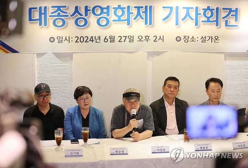 | ▲ 입장문 발표하는 양윤호 이사장 (서울=연합뉴스) 이재희 기자 = 27일 오후 서울 종로구 설가온에서 열린 '대종상영화제 기자회견'에서 양윤호 한국영화인총연합회 이사장이 입장문을 발표하고 있다. 2024.6.27 scape@yna.co.kr |