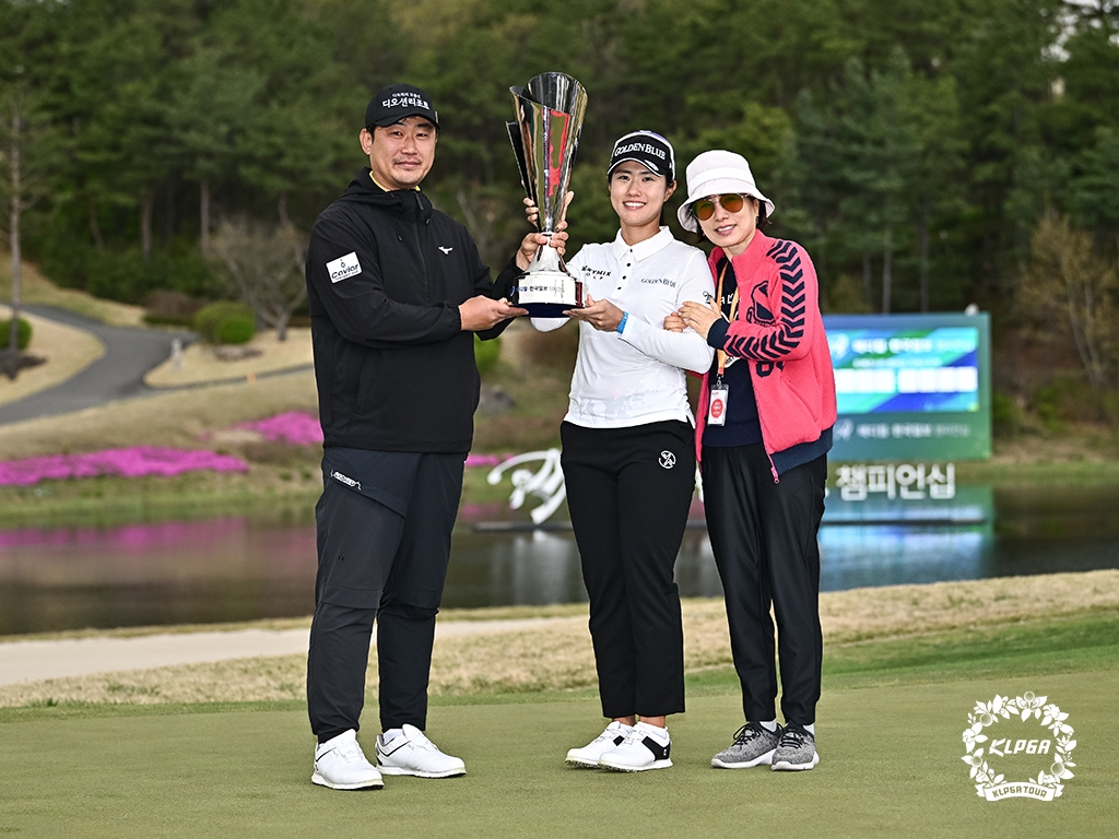 | ▲ 캐디(왼쪽), 어머니(오른쪽)와 함께 기념 촬영을 한 이주미 [KLPGA 투어 제공. 재판매 및 DB 금지] |