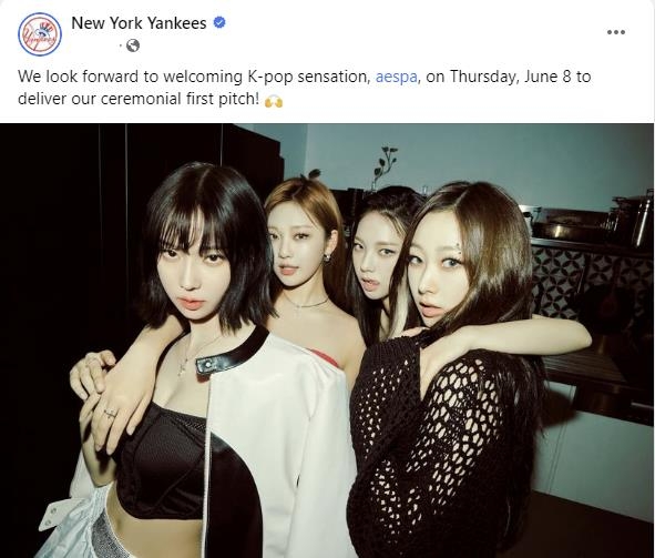 양키스는 7일(이상 한국시간) 구단 공식 소셜미디어를 통해 "K팝 돌풍의 주역인 에스파가 9일 시구한다"고 전했다.