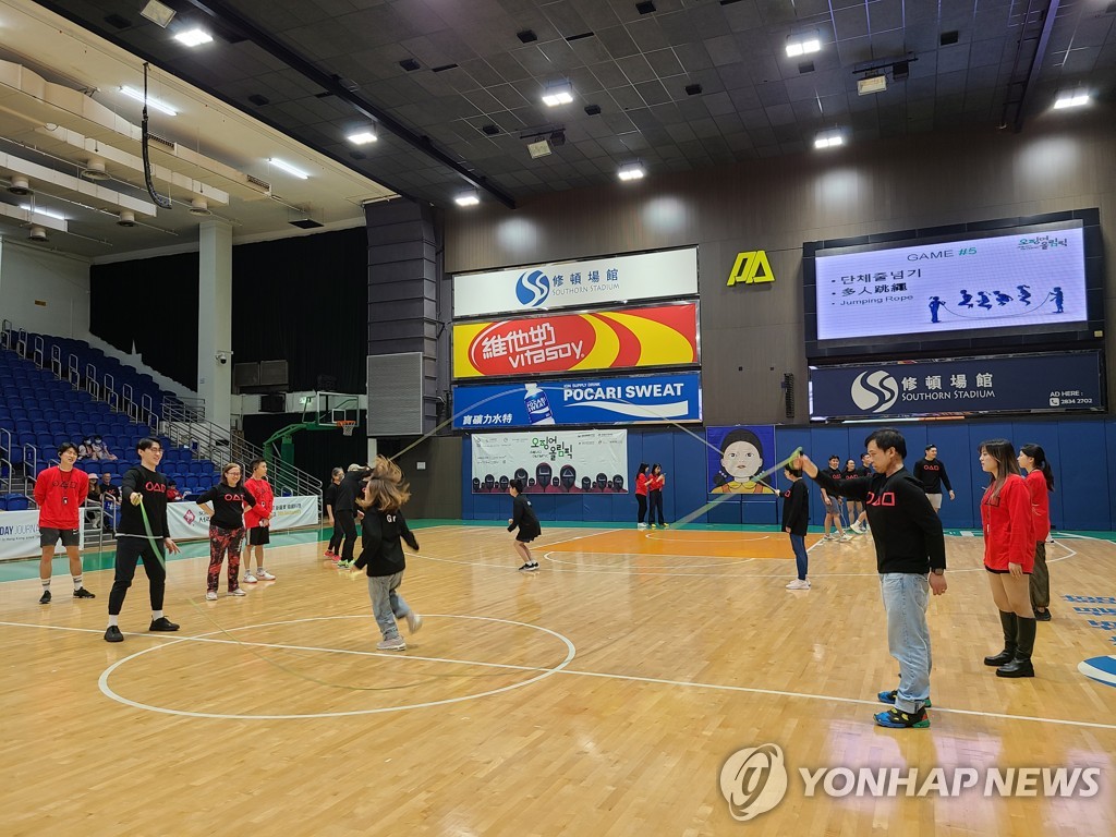 | ▲ 홍콩 '오징어 게임' 대회 (홍콩=연합뉴스) 윤고은 특파원 = 홍콩 완차이 사우손 스타디움에서 12일 열린 '코리아 게임 : 오징어 올림픽'. 총 20개 팀 100명이 참가해 무궁화꽃이 피었습니다·달고나 뽑기·딱지 치기·제기차기·줄다리기·단체 줄넘기·2인3각 달리기 등 10여종의 다양한 한국의 놀이를 즐겼다. 2023.3.12. |
