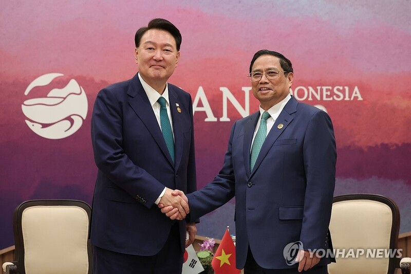 With Vietnamese Prime Minister Pham Minh Chinh, Yoon called for fully developing the Comprehensive Strategic Partnership the two sides agreed to establish during his state visit to Vietnam in June, while emphasizing the importance of creating a business-friendly environment to boost bilateral trade, his office said.