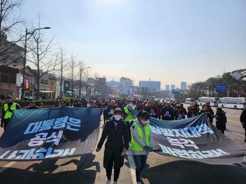 Rep. Lee Jae-myung, the leader of the main opposition Democratic Party, and other opposition lawmakers also joined the rally.