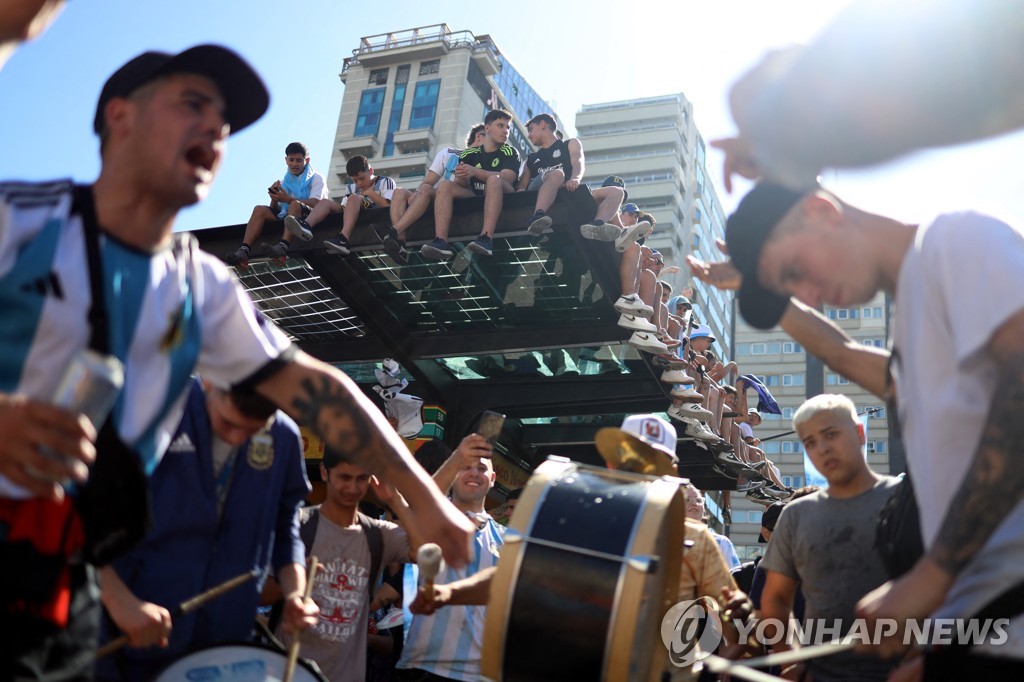 | ▲ "우리에게 월드컵 같은 축복이 계속 되길…" (부에노스아이레스 EPA=연합뉴스) 아르헨티나 수도 부에노스아이레스에서 열린 월드컵 우승 축하 선수단 카퍼레이드 행사장 주변에서 젊은이들이 아르헨티나의 우승을 축하하며 축제 분위기를 만끽하고 있다. 2022.12.20 photo@yna.co.kr |