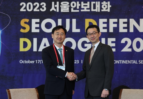 Vice Defense Minister Shin Beom-chul sat down with his Japanese counterpart, Kiyoshi Serizawa, on the margins of the Seoul Defense Dialogue, an annual international security forum, marking the first meeting of its kind since September last year.