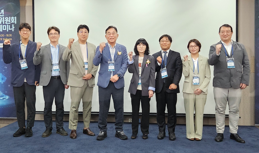 | ▲ 2023년 게임물관리위원회 게임정책 세미나 (서울=연합뉴스) 김주환 기자 = 28일 서울 중구 라마다 동대문 호텔에서 열린 '2023년 게임물관리위원회 게임정책 세미나'에서 참석자들이 기념사진 촬영을 위해 포즈를 취하고 있다. 왼쪽부터 한국게임정책자율기구(GSOK) 나현수 국장, 배관표 충남대 교수, 장봉진 대구한의대 교수, 김규철 게임위원장, 이영민 문화체육관광부 게임콘텐츠사업과장, 강태욱 법무법인 태평양 변호사, 성수민 법무법인 한앤율 변호사, 성욱준 서울과학기술대 교수. 2023.6.28 jujuk@yna.co.kr |