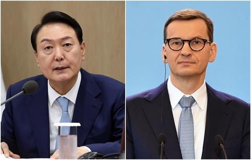 | ▲ This combination of undated file photos shows South Korean President Yoon Suk-yeol (L) and Polish Prime Minister Mateusz Morawiecki. (Yonhap) (EPA) |