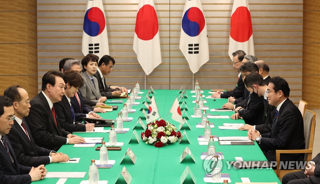 TOKYO, March 16 (Yonhap) -- President Yoon Suk Yeol said Thursday he agreed to "completely normalize" a military intelligence-sharing pact between South Korea and Japan to better respond to North Korea's nuclear and missile threats.