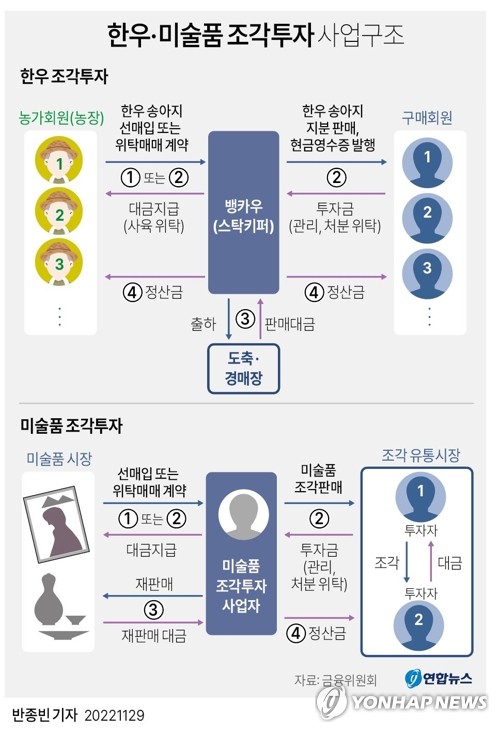 | ▲ [그래픽] 한우·미술품 조각투자 사업구조 (서울=연합뉴스) 반종빈 기자 bjbin@yna.co.kr 페이스북 tuney.kr/LeYN1 트위터 @yonhap_graphics |