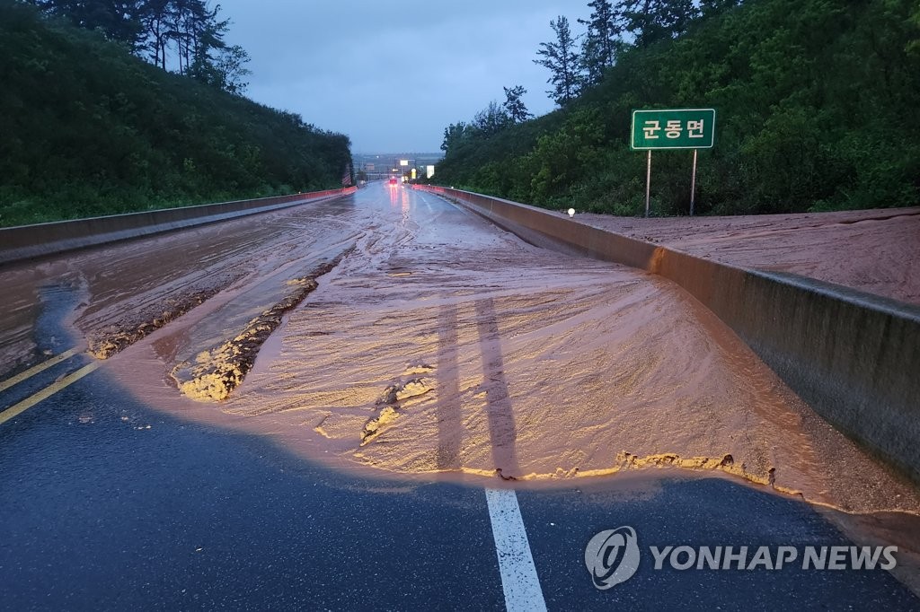 Gwangju said its western district of Gwangsan had received 39 millimeters of rain per hour, as of 4:30 p.m., which flooded facilities and roads.