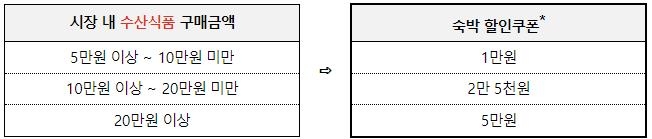 수산물 구매금액 따라 최대 5만원 숙박할인 쿠폰 지급