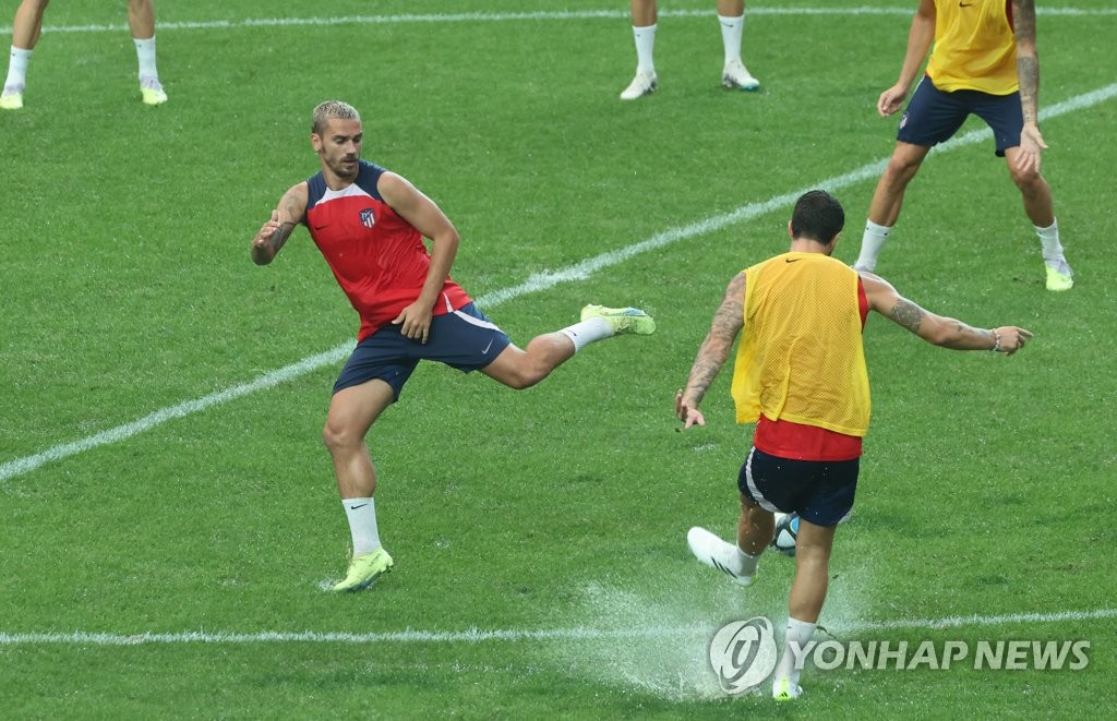 | ▲ 훈련도 실전처럼 (서울=연합뉴스) 임화영 기자 = 26일 서울월드컵경기장에서 팀 K리그와의 쿠팡플레이 시리즈 1차전을 앞두고 열린 아틀레티코 마드리드(AT마드리드) 오픈 트레이닝에서 선수들이 훈련하고 있다. 2023.7.26 hwayoung7@yna.co.kr |