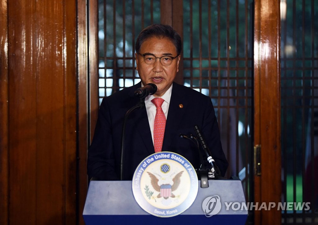 | ▲ South Korean Foreign Minister Park Jin speaks during a U.S. Independence Day reception at the official residence of U.S. Ambassador to South Korea Philip Goldberg in Seoul on July 13, 2022. (Pool photo) (Yonhap) |