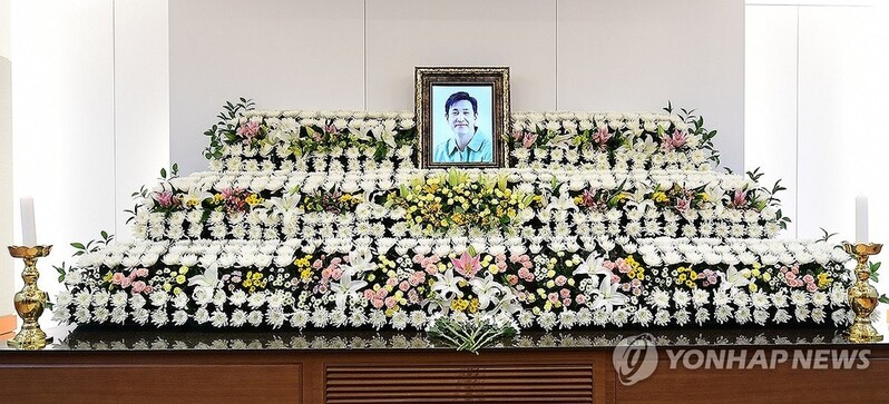 사진 주위로는 하얀 국화꽃이 빼곡했고, 빈소 근처에는 각계에서 보낸 근조 화환이 자리를 지켰다.