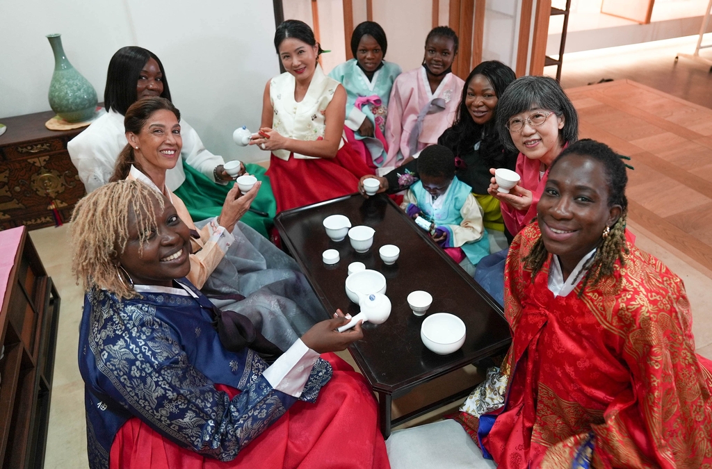 | ▲ '한국 차맛 좋아요' 한국 문화 체험 중인 대사부인들 [주나이지리아 한국문화원 제공·재판매 및 DB 금지] |
