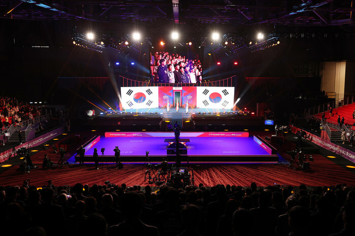 The opening ceremony for the International Table Tennis Federation World Team Table Tennis Championships takes place at the Busan Exhibition and Convention Center in the southeastern port city of Busan, on Feb. 17, 2024, as provided by the organizing body. (PHOTO NOT FOR SALE) (Yonhap)