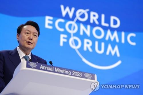 | ▲ President Yoon Suk Yeol speaks during the annual meeting of the World Economic Forum in Davos, Switzerland, on Jan. 19, 2023. (Yonhap) |