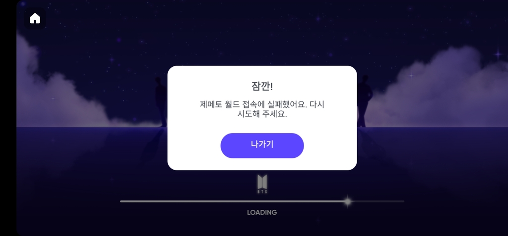 이용자들은 재접속을 시도해도 '제페토 월드 접속에 실패했어요. 다시 시도해 주세요'라는 알람이 떠 공연 관람에 불편을 겪었다.