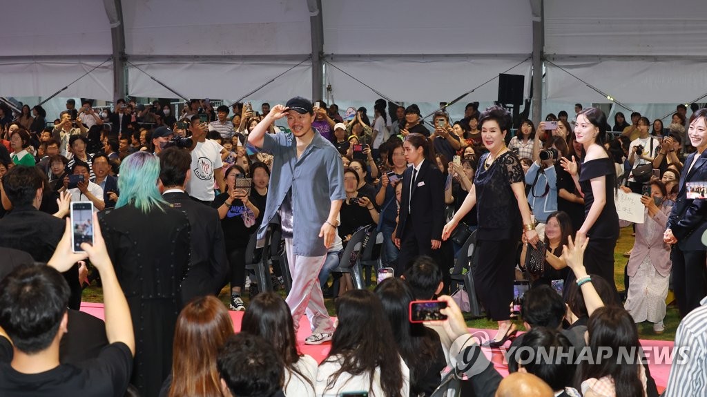 ▲ 부천국제판타스틱영화제 환호하는 관람객들 (부천=연합뉴스) 임순석 기자 = 29일 오후 경기도 부천시 부천시청 야외무대에서 열린 제27회 부천국제판타스틱영화제 개막식에서 배우들의 입장에 관람객들이 환호하고 있다. 2023.6.29 soonseok02@yna.co.kr