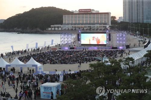 | ▲ Fans gather to watch a BTS show live on large screens set up at Haeundae Beach in the southern port city of Busan on Oct. 15, 2022. (Yonhap) |