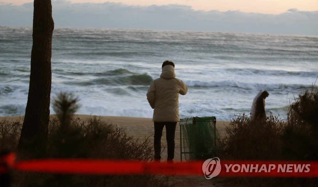 | ▲ 아쉬운 시민 의식 (강릉=연합뉴스) 이해용 기자 = 31일 아침 강원 강릉시의 한 해변에서 관광객이 코로나19 확산을 막기 위해 설치한 출입 통제선을 넘어가 바닷가를 걷고 있다. 강릉시는 이날 오전 10시부터 해변 인근 주차장까지 폐쇄해 관광객의 접근을 원천 봉쇄할 예정이다. 2020.12.31 dmz@yna.co.kr |
