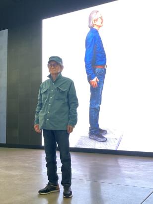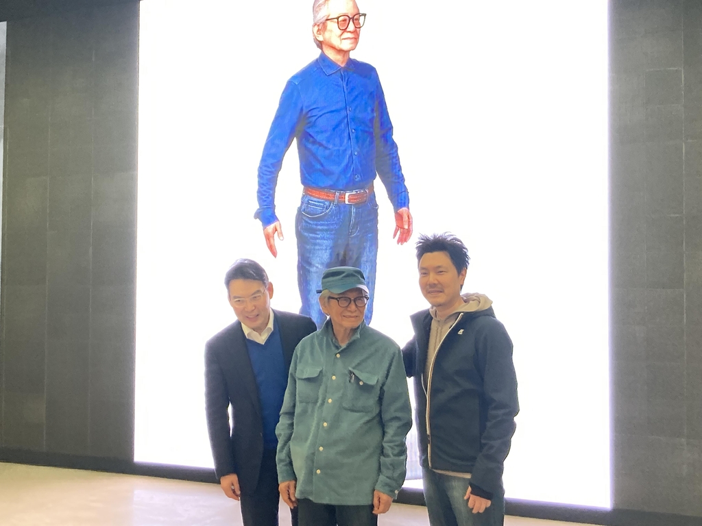 | ▲ (서울=연합뉴스) 강종훈 기자 = NFT 작품 제작을 위한 자신의 아바타 앞에 선 이건용 작가. |