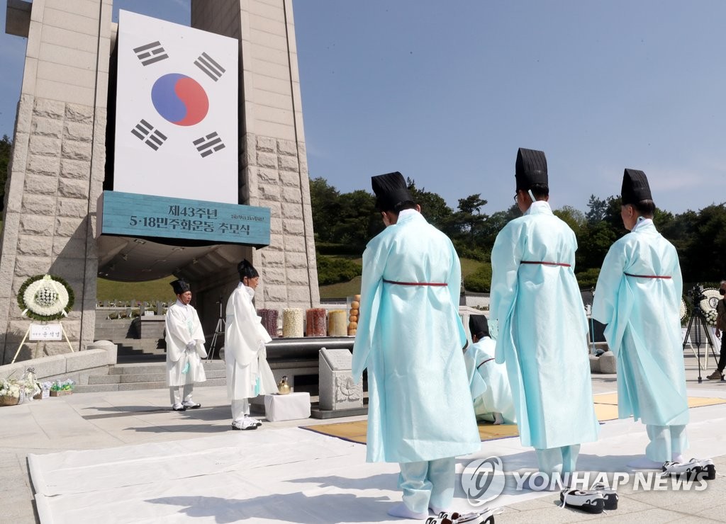(광주=연합뉴스) 박철홍 정다움 기자 = 5·18 민주화운동으로 희생된 영령들을 추모하는 5·18 민중항쟁 제43주년 추모식이 17일 광주 북구 국립 5·18 민주묘지에서 엄수됐다.