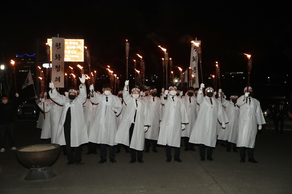대형 태극기를 앞세운 참석자들은 흰색 두루마기 차림에 '애국애족'이란 글이 쓰인 태극 머리띠를 두르고 열사의 거리(길이 260m)에서 만세삼창을 외치며 횃불을 들고 행진했다.