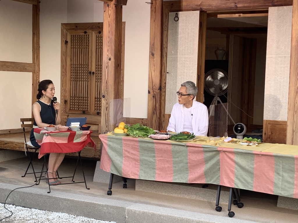 | ▲ (도쿄=연합뉴스) 일본 인기 드라마 '고독한 미식가' 출연 배우인 마쓰시게 유타카(오른쪽)가 6일 도쿄 한국문화원에서 '집에서 즐기는 한식'을 주제로 한국관광공사 도쿄지사 측이 마련한 온·오프라인 공동 행사에서 진행자와 대화를 나누고 있다. |