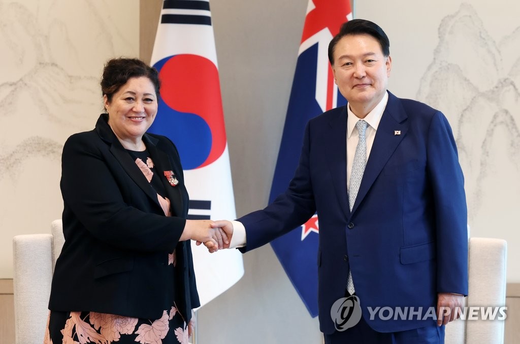 Separately, Yoon met with Cindy Kiro, governor-general of New Zealand and had wide-ranging discussions on ways to enhance the two countries' friendly ties, according to Lee.