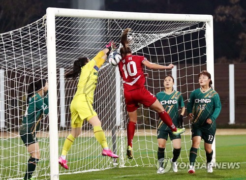 | ▲ 인천 엘리 '헤딩슛으로 골' (인천=연합뉴스) 윤태현 기자 = 16일 인천 남동경기장에서 열린 여자프로축구 챔피언결정전 2차전 인천 현대제철과 경주 한국수력원자력 축구단의 경기. 후반전 인천 엘리가 헤딩슛으로 골을 넣고 있다. 2020.11.16 tomatoyoon@yna.co.kr |
