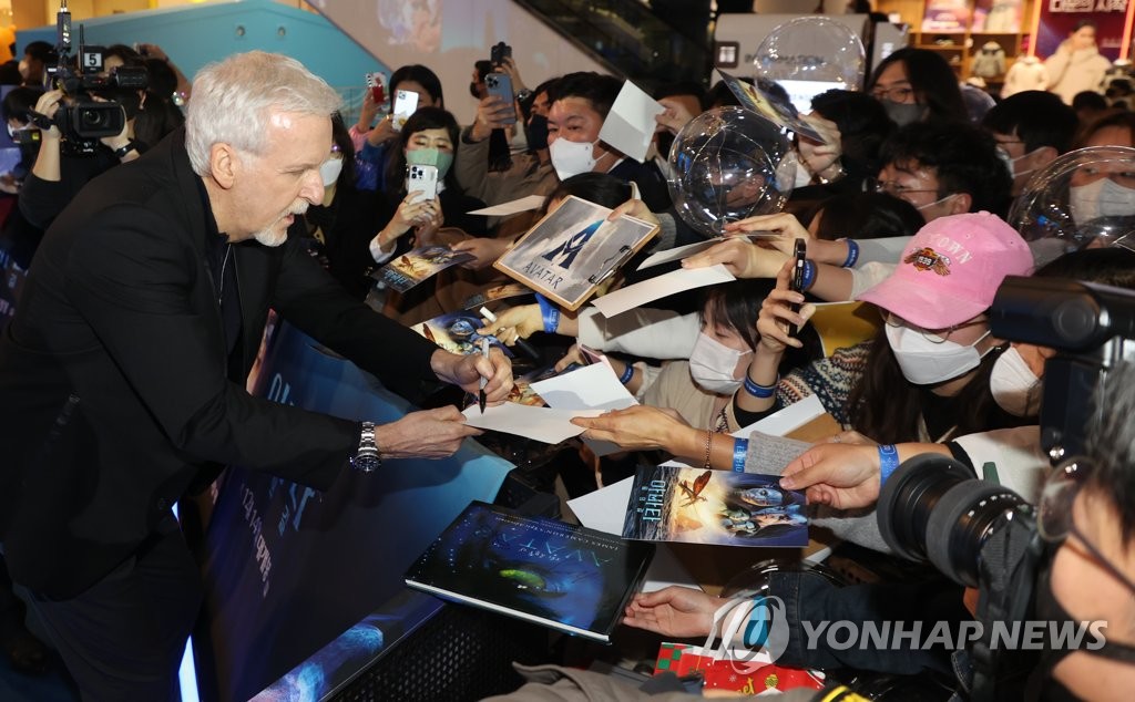 | ▲ 한국팬들 직접 만난 제임스 캐머런 감독 (서울=연합뉴스) 류효림 기자 = 제임스 캐머런 감독이 9일 오후 서울 영등포구 타임스퀘어에서 열린 영화 '아바타 물의 길' 블루카펫 행사에서 팬들에게 인사하고 있다. 2022.12.9 ryousanta@yna.co.kr |