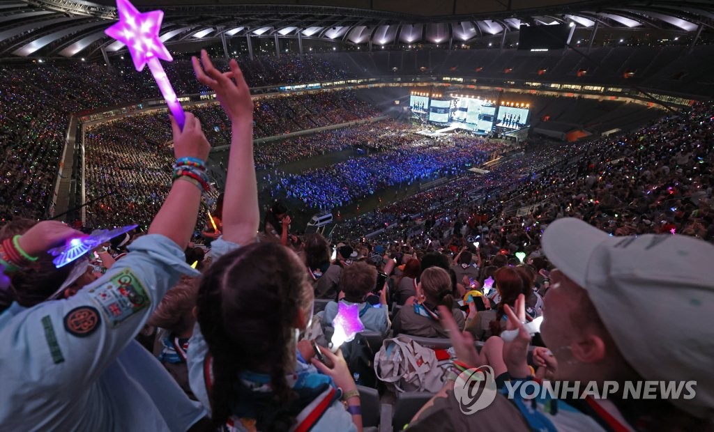 폭염과 태풍 등 기상 악화로 전국 8개 시도로 흩어졌던 대원들은 11일 오후 마포구 서울월드컵경기장에서 폐영식과 함께 열린 K-팝 공연으로 잼버리의 마지막 밤을 즐겼다.