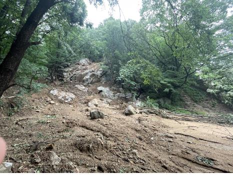 | ▲ 남한산성 성곽 인근에서 산사태가 발생한 모습 [문화재청 제공. 재판매 및 DB 금지] |