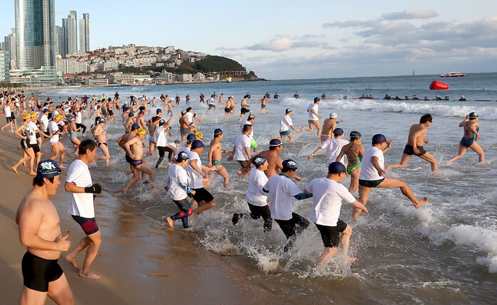 Into cold winter sea in Busan
