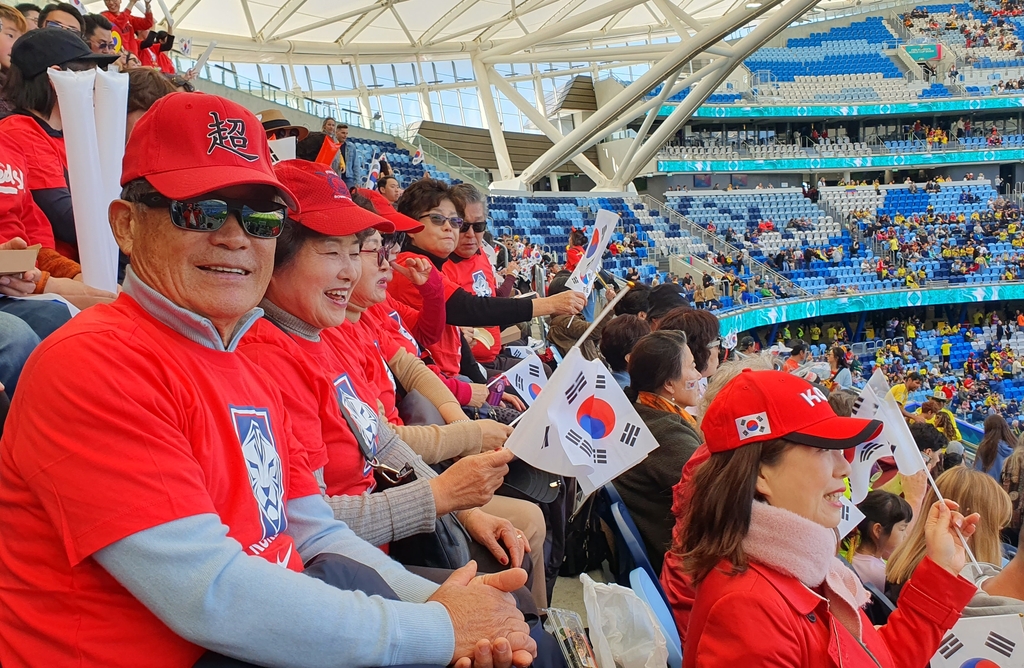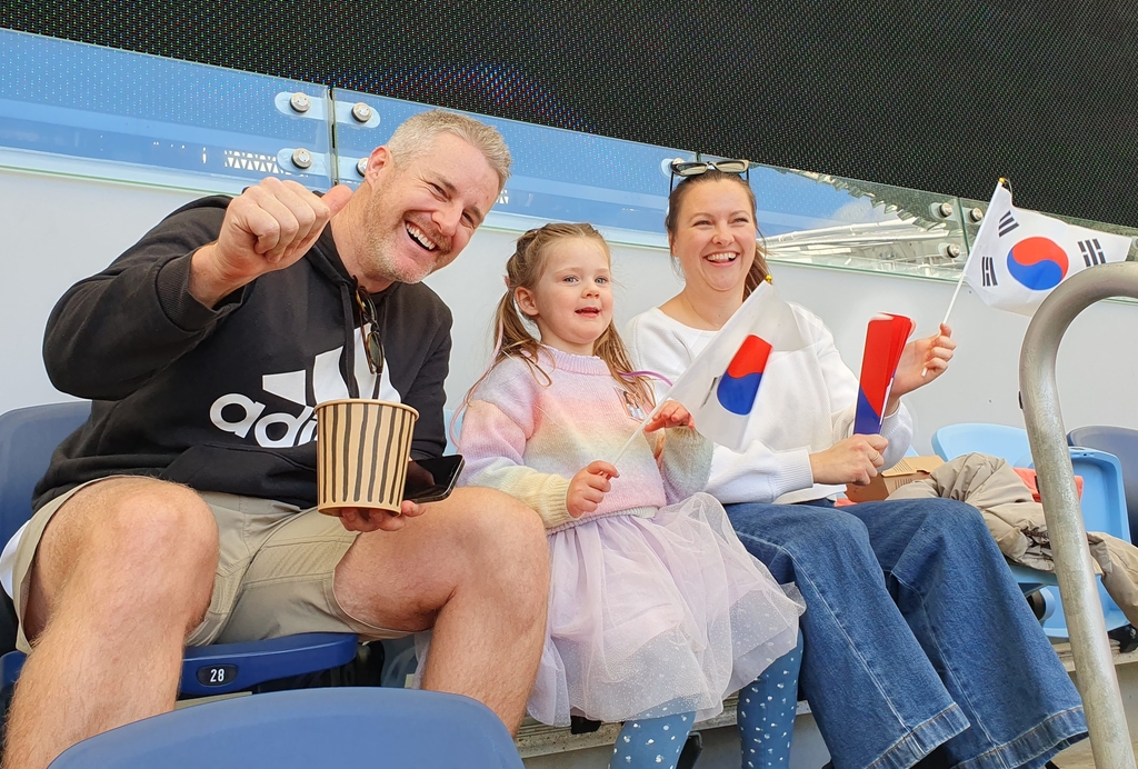 한국인뿐 아니라 태극부채와 태극기를 들고 한국팀을 응원하는 호주인 가족도 눈길을 끌었습니다.