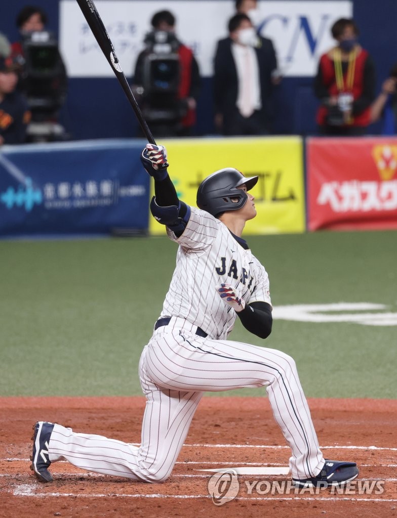 (오사카=연합뉴스) 천병혁 기자 = 미국프로야구 메이저리그(MLB)에서도 간판스타로 자리 잡은 오타니 쇼헤이(로스앤젤레스 에인절스)가 일본 대표팀 합류 첫 경기에서 호쾌한 '홈런 쇼'를 펼쳤다.