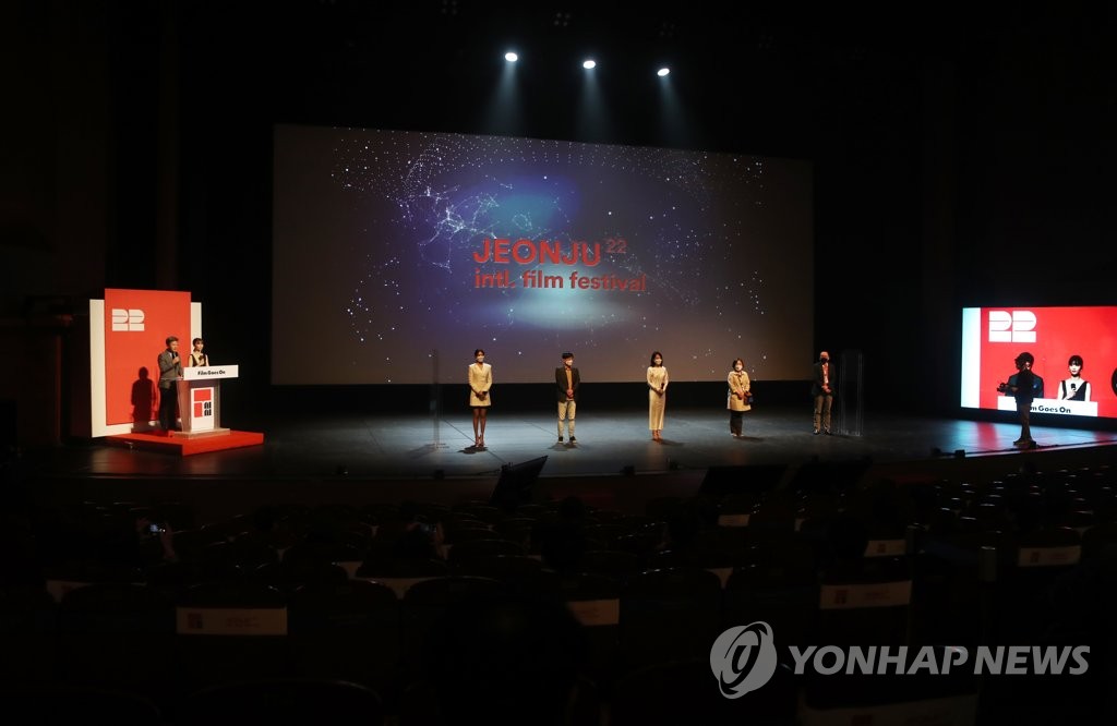 The opening ceremony was held at Sori Arts Center in Jeonju, some 240 kilometers south of Seoul, with filmmakers, artists and silver screen stars attending but no on-site spectators.