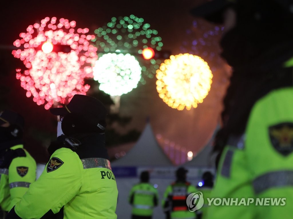 | ▲ 불꽃축제와 경찰 (부산=연합뉴스) 박성제 기자 = 부산불꽃축제가 열린 17일 오후 부산 광안리 해변 일대에서 경찰이 시민들을 안내하며 인파 밀집 관리를 하고 있다. 2022.12.17 psj19@yna.co.kr |