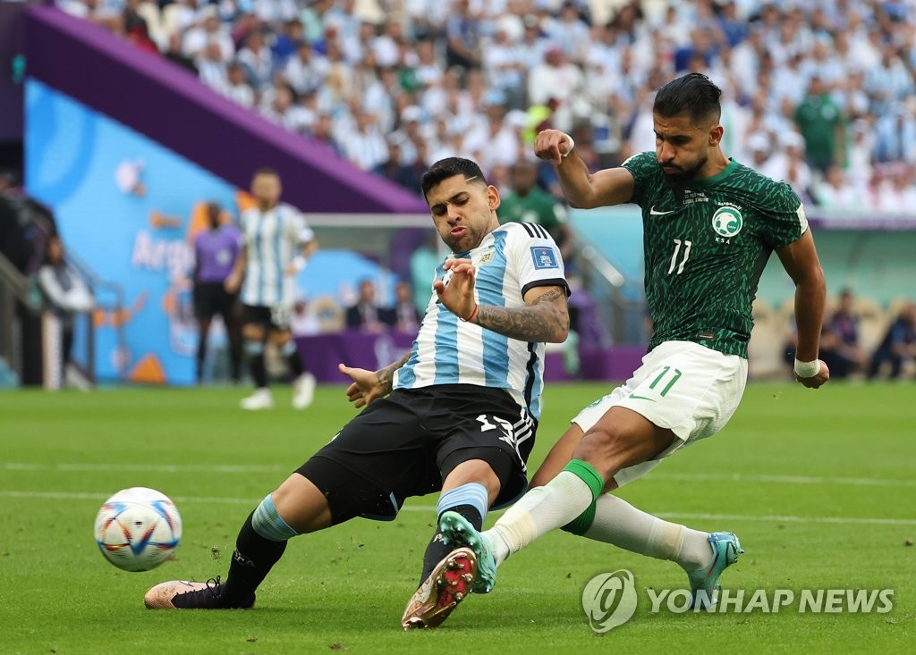 | ▲ 사우디 살리흐 샤흐리 동점골 (루사일=연합뉴스) 임헌정 기자 = 22일(현지시간) 카타르 루사일 스타디움에서 열린 2022 카타르 월드컵 조별리그 C조 1차전 아르헨티나와 사우디아라비아 경기. 사우디아라비아의 살리흐 샤흐리가 동점골을 넣고 있다. 2022.11.23 kane@yna.co.kr |