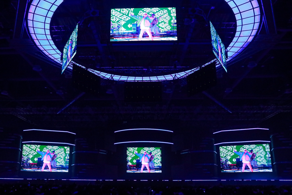 이날 공연에는 하이브의 '식구'인 세계적 팝스타 저스틴 비버도 영상으로 참여했다.