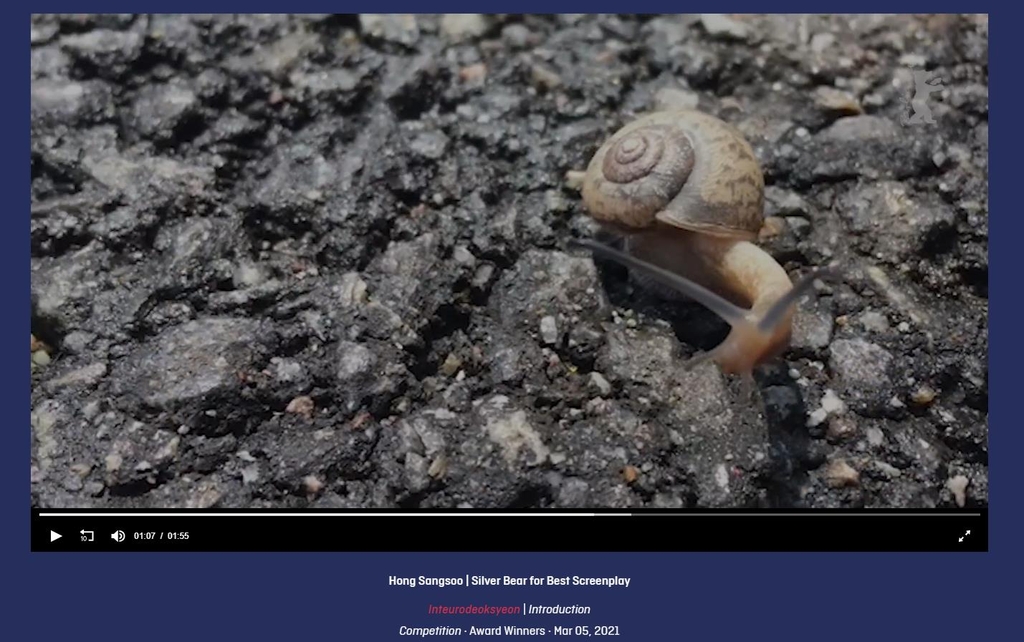 | ▲ 홍상수 감독이 수상 소감으로 올린 달팽이 동영상 [베를린국제영화제 홈페이지 캡쳐] |