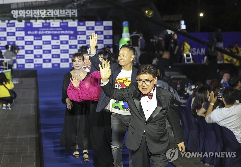 | ▲ 부산바다 웃음바다…부산국제코미디페스티벌 개막 (부산=연합뉴스) 강덕철 기자 = 25일 오후 부산 해운대구 영화의전당 야외극장에서 열린 제11회 부산국제코미디페스티벌(BICF) 개막식에서 코미디언 엄용수, 김학래 등이 블루카펫에 올라 입장하고 있다. 2023.8.25 kangdcc@yna.co.kr |