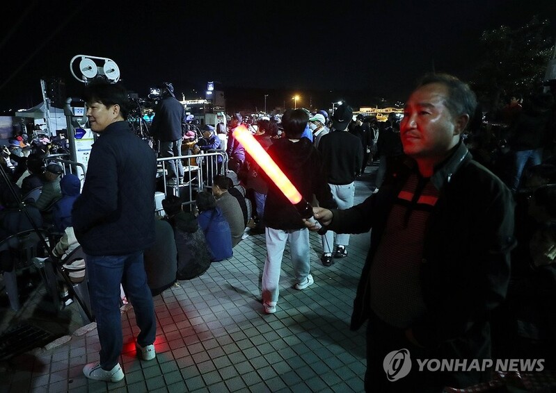 | ▲ 불꽃축제 안전하게 (여수=연합뉴스) 장덕종 기자 = 28일 밤 불꽃축제가 열린 전남 여수시 중앙동 이순신광장에서 안내 요원이 인파 관리를 하고 있다. 2023.10.28 cbebop@yna.co.kr |