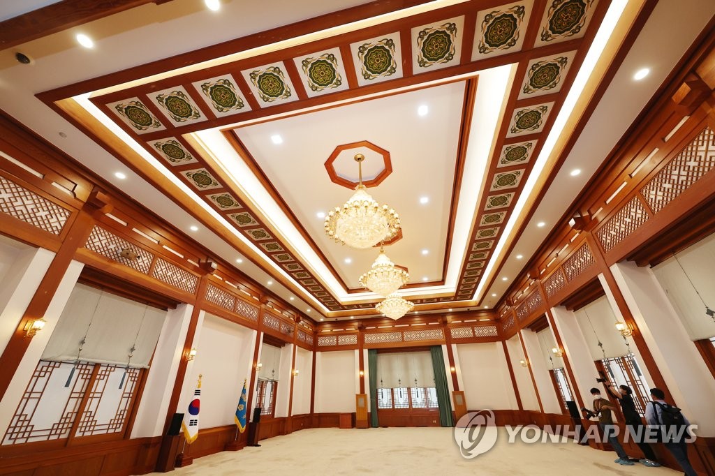 청와대 안쪽에 있는 관저는 전통 방식으로 지은 ㄱ자 형태 건물이다. 관저 정문인 인수문을 통과해 오른쪽 입구에서 신발을 벗고 들어가니 가장 먼저 연회실이 보였다.