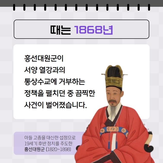 흥선대원군이 서양 열강과의 통상수교에 거부하는 정책을 펼치던 중 끔찍한 사건이 벌어졌습니다.