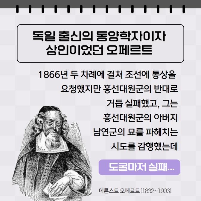 독일 출신의 동양학자이자 상인이었던 오페르트가 1866년 두 차례에 걸쳐 조선에 통상을 요청했지만