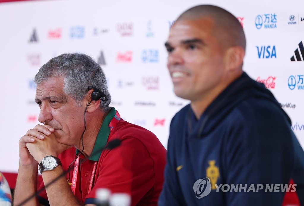 | ▲ 기자회견 참석한 페르난두 산투스 감독 (알라이얀=연합뉴스) 김도훈 기자 = 2022 카타르 월드컵 조별리그 3차전 한국과 포르투갈의 경기를 앞둔 1일(현지시간) 포르투갈 페르난두 산투스 감독이 자리에 앉아 있다. 오른쪽은 페프. 2022.12.1 superdoo82@yna.co.kr |